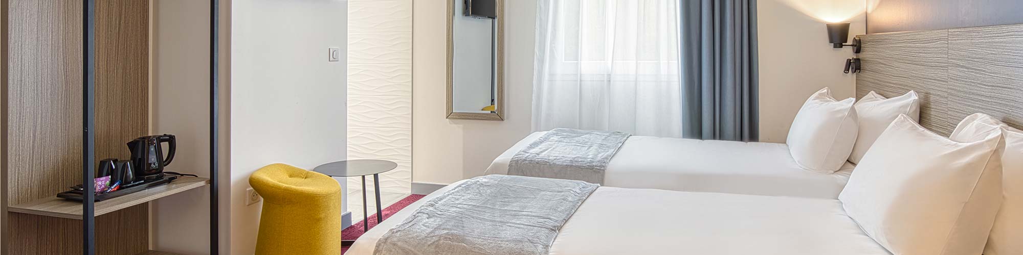 Notre hôtel abrite 49 chambres de catégories Standard, Supérieure ou Familiale afin de s’adapter aux besoins de tous.